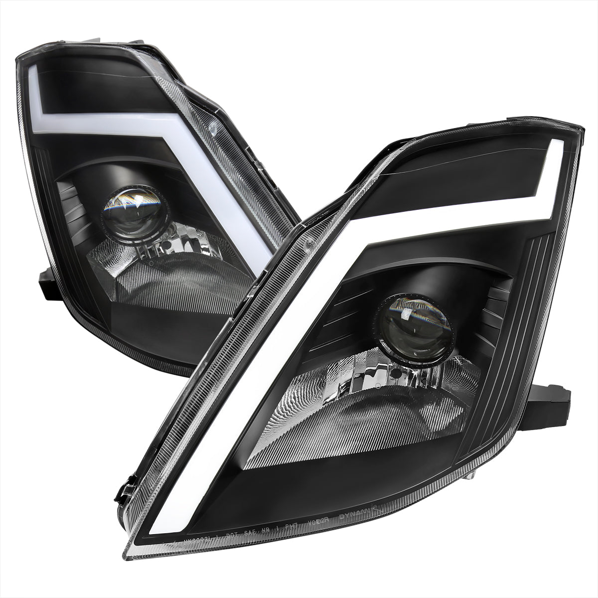 2003-2005 Nissan 350Z Switchback Sequential Turn Signal Animated LED Bar Projector Headlights (Matte Black Housing/Clear Lens)
