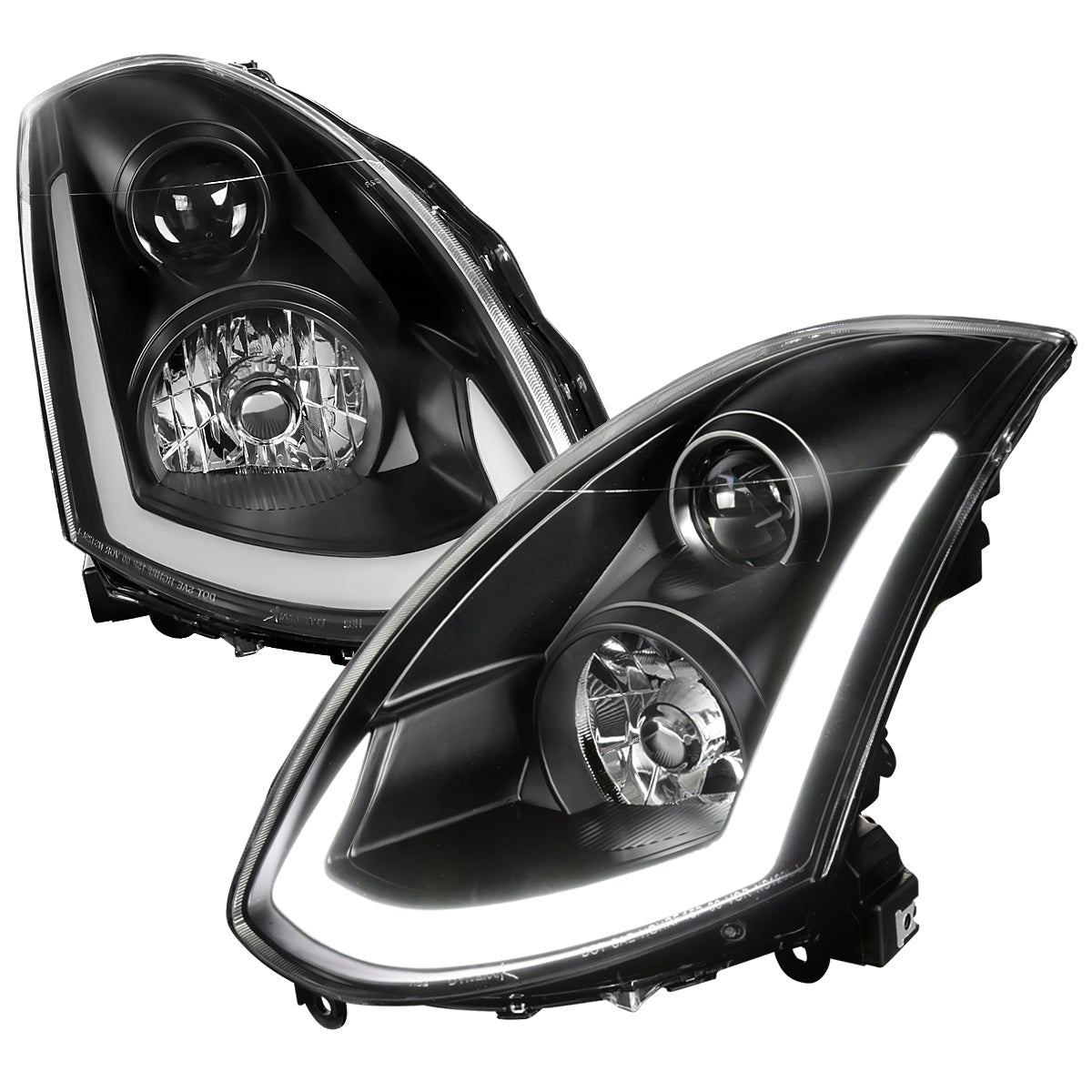 Spec-D Tuning's projector headlights for 2003-2007 Infiniti G35 coupe are manufactured with the utmost quality standards and designed to be a direct replacement of stock Xenon headlights. Not only these headlights enhances the overall appearance of the vehicle, it improves the lighting capabilities as well with a 2-in-1 LED light bar function: White LED bar and amber sequential turn signals for better visibility on the road.