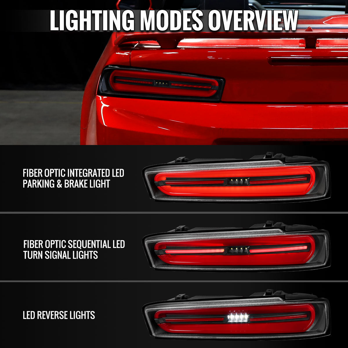 2016-2018 Chevrolet Camaro Full Red LED Sequential Tail Light (Black Housing / Clear Lens)