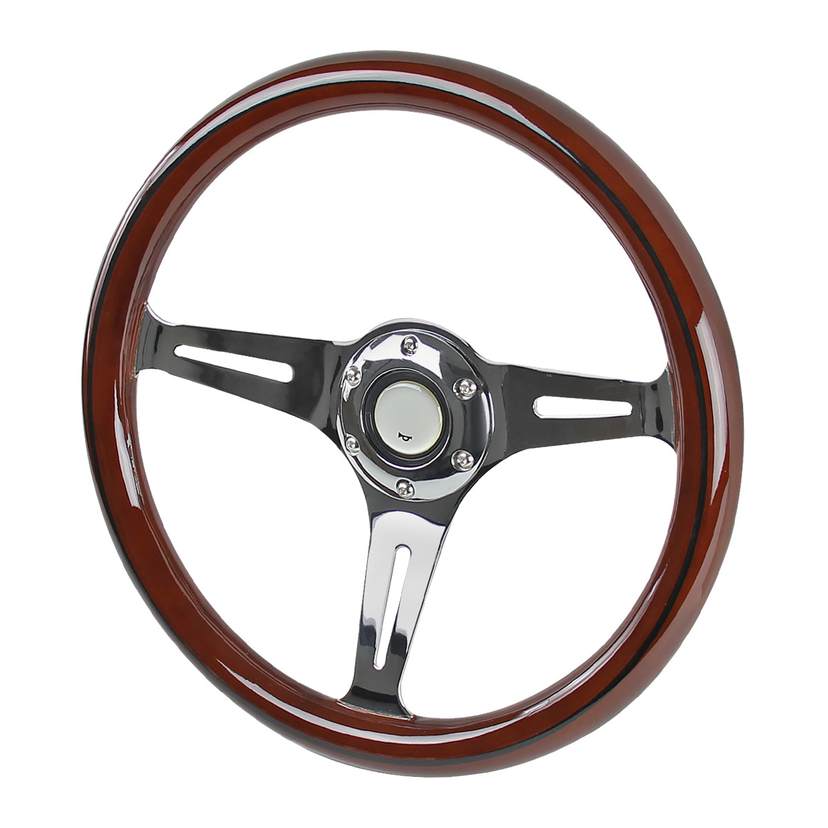 340mm 3-Spoke 1.75" Deep Dish Classic Wooden Style Steering Wheel