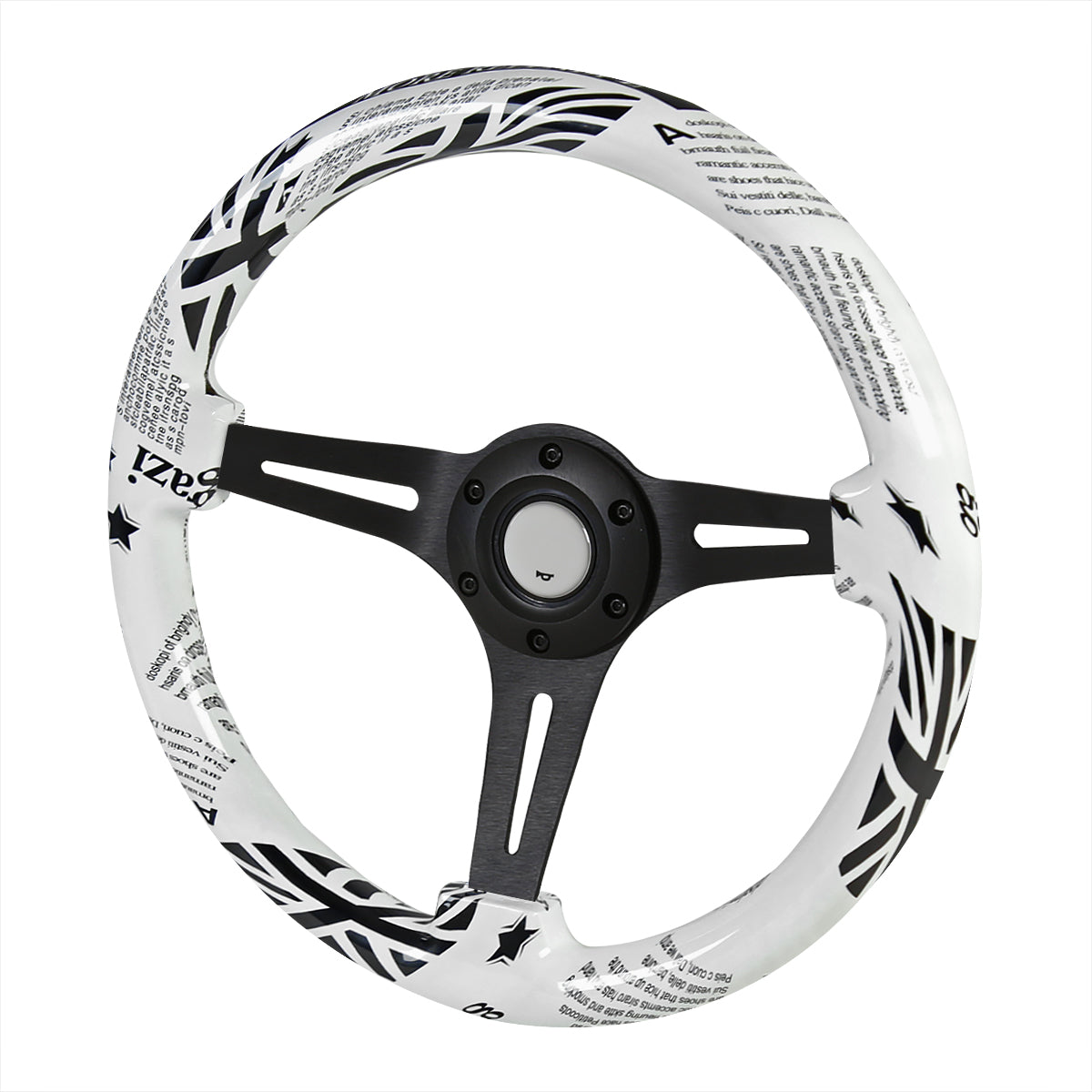 350mm Black & White Style 2" Deep Dish Aluminum 3-Spoke Wooden Steering Wheel (Black)
