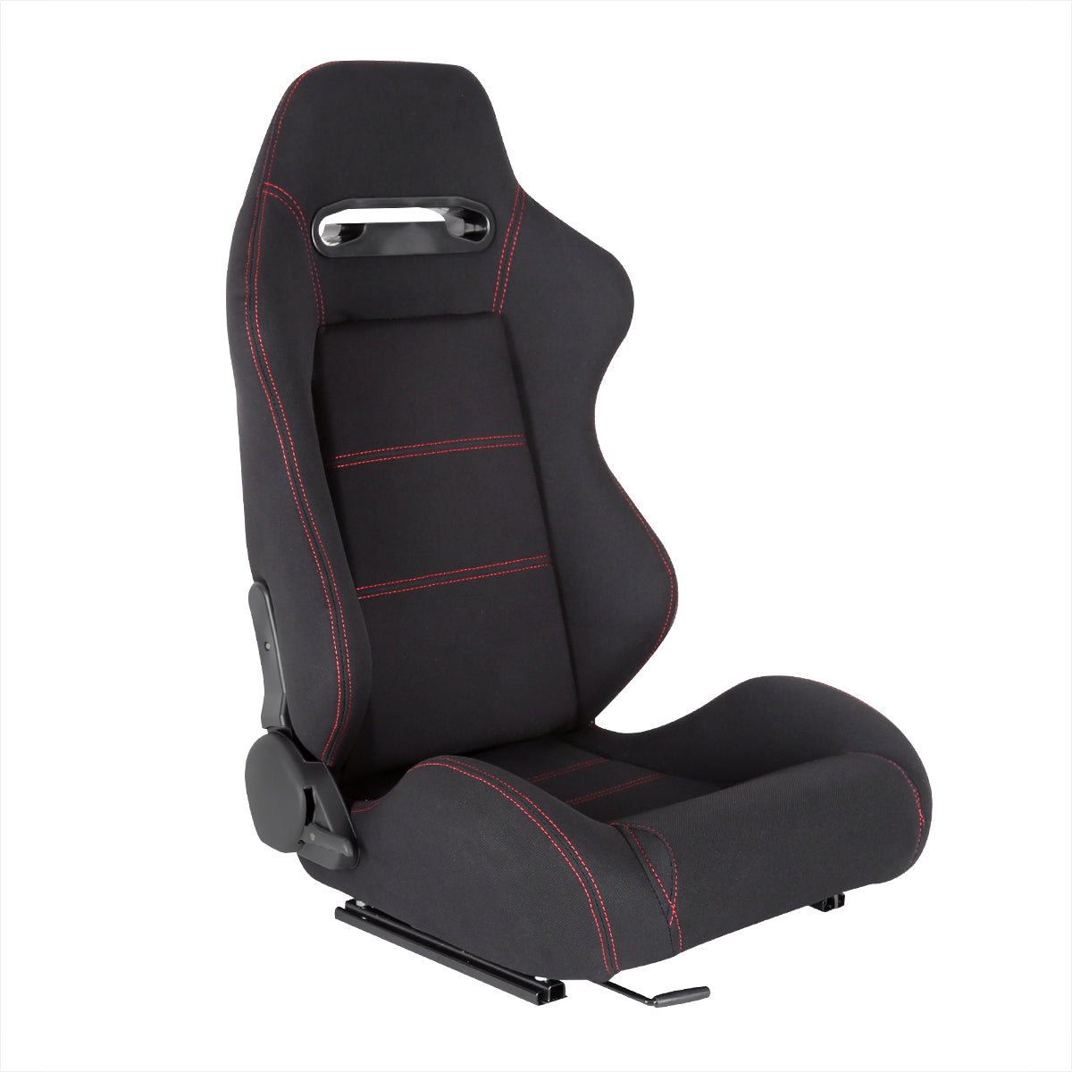 Fully Reclinable Black Cloth Bucket Racing Seat w/ Sliders - Passenger Side Only